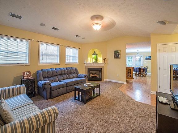 Waveland Estates One Floor Living. Low monthly Electric Bills. Ask you Realtor for a copy of last 12 months Electric Bills. This ranch style home has 3 bedrooms and 2 full baths, kitchen appliances, wine cooler with wine rack and bar area cabinets, center island in kitchen stays, kitchen pantry closet, ceramic tile backsplash in kitchen, pendant lights, window blinds, built-in speakers for surround sound in great room, fireplace with gas logs and shelf above to display whatever your heart desires, trey ceiling in owner's suite bedroom, walk-in clothes closet, good size laundry room, linen closet, upgraded lighting fixtures, ceiling fans with lights, patio, privacy fenced backyard, 2 car garage with remote control opener and 2 car wide driveway, Heating and Central Air Conditioning is 1+ years New! That is a major expense out of the way. With limited inventory of ready to move into homes, Call your Realtor Today!