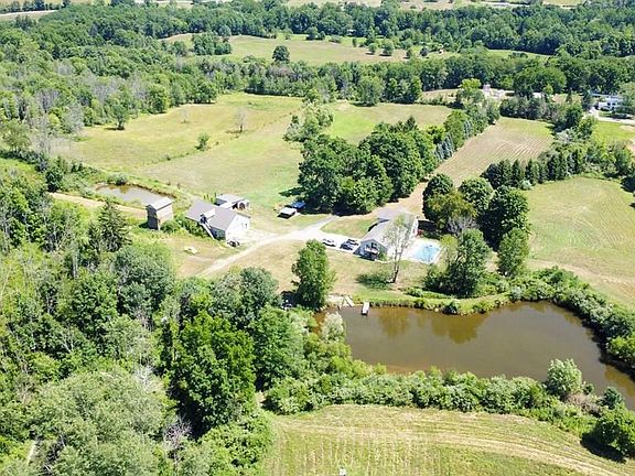 Secluded private living in this Beautifully remodeled farmhouse situated on just over 157 secluded acres offering all the amenities you can think of. Home boasts 6 bedrooms and 2 full bathrooms with just under 4000 finished sq ft. Home has an attached oversized 2 1/2 car garage attached and a 40x60 huge pole barn with electricity and water available to it! Granite counter tops in the kitchen with stainless appliances with soft close cherry cabinets and hickory hard wood floors. There's a 1 acre pond right out back along with Structures for hunting blinds and panoramic views of the valley!
