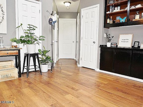 Gorgeous home located in the beautiful community of Rock Creek. As you pull up to the home you are met with a mature and charming landscape. Make your way through the front door to be dazzled by the grand yet chic feel. You will love the vaulted ceilings with 2 skylights, which allows plenty of natural lighting to flow through this space. You will also love the built in bookshelf, with cabinets, for added storage. The wood burning fireplace and customized mantle adds even more charm to this amazing home. The owner's suite is located on the primary floor, and is nicely sized, with a door to the large deck, leaving you private access in the morning to enjoy, coffee/tea on a lovely NC morning. You will also appreciate the manicured fenced in backyard as well. The kitchen comes well equipped with all appliances and tons of cabinet and county space. The dining room is just off the kitchen and both rooms offer a remarkable view of the backyard. Make your way to the wood stairs to find a small loft area which is perfect for an office space, or whatever you choose to use it for. There are also two secondary bedrooms that are very nicely sized, and a hall bathroom. This home has a bounty of natural lighting, tons of closets for storage, a metal roof, in an established and sought after community and is just waiting for the you to make it your home! Call today for a room by room tour!