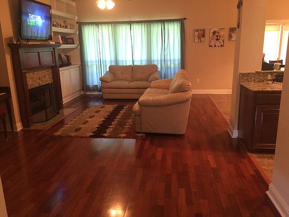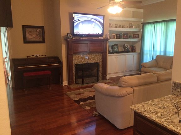 Beautiful open floor plan located near a quiet cul de sac in Raiford Oaks. The home boasts wood floors and tile in common areas with carpet in the bedrooms. Ceiling heights range from 10 feet in common areas to 8-10 feet in bedrooms. Performance GE stainless gas stove in kitchen, large walk-in pantry, hardwood custom cabinets. Oversized 2 car garage, sturdy well built Gorilla play set, and a large lot complete with live oak in the middle of the backyard. Neighborhood has a pool cabana area, playground, walking trail, large live oak grove and perfect perch jerking canal! Other features include granite countertops throughout, jetted tub and separate shower in master bathroom, double vanity in both bathrooms, spray foam insulation and excellent windows for high energy efficiency, tankless water heater, fireplace with custom hardwood mantle, custom built-in shelves in living room and extra large walk-in closet in master bedroom.