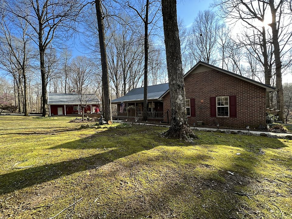 Peace and quiet await you in this wonderful brick home with a huge 44x40 shop with half bath and kitchenette. Surrounded by 6.9 acres and you'll be able to sit on the back covered deck and take it all in. This home features 3 bedrooms and two and half baths, hardwood floors, and more. Location is phenomenal located minutes from Normandy Lake public boat ramp and camping.