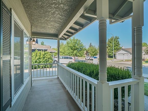 Tucked away in Eaton Village at the end of the cul-de-sac, this adorable home is ready for you to MOVE RIGHT IN! Adorable front porch that wraps around front of the home is charming and inviting. Walk in the front door you light and bright living room with vaulted ceilings, a gas fireplace with mantle, picture windows and a ceiling fan. The quaint kitchen is open to the living room and features a breakfast bar, gas stove, and window overlooking backyard. The bedrooms and hall bath come complete with clean walls and carpet, good size closets and a nice window. The master bedroom and bathroom feature a sliding door to the backyard, ceiling fan, high ceilings and a pocket door into the bathroom for extra privacy. The backyard is perfect for BBQing on the patio, has a newer fence, grass area and enough space for entertaining!