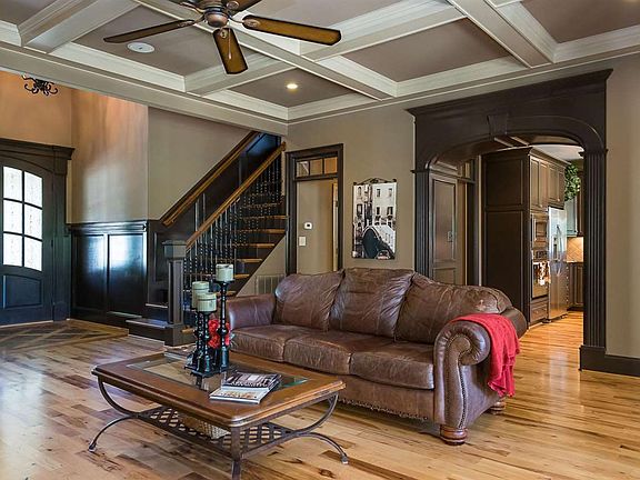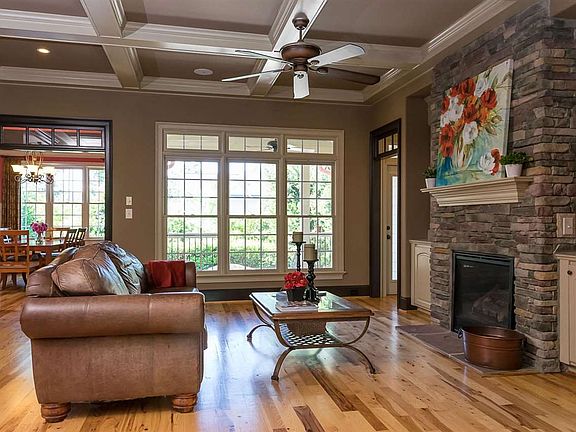 A 2008 Parade of Homes entry by Braswell exudes classic elegance! Every upgrade imaginable in this luxurious home only a custom builder displaying the best of his craft would do! Rich solid front door, coffered ceilings, incredible artistic design in floors & tile work, hickory hardwood floors, stone fireplace, high end cabinetry, wrought iron rails, built in bookcases, surround sound, covered front and back porches, professionally landscaped yard, courtyard patio w/ built-in grill, storage galore!