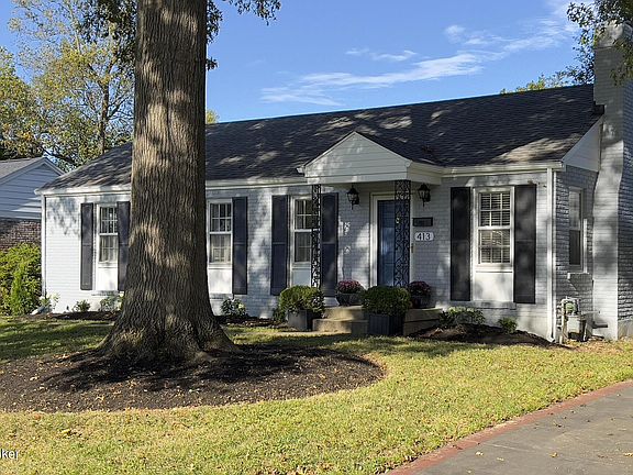 Wow! Welcome to 413 Lotis Way in beautiful and desirable Brownsboro Village! This Super Cozy Mid-Century Ranch will Impress! The home greets you with lovely curb appeal and a friendly and welcoming vibe! Upon entry you'll notice the beautiful original oak hardwood floors! The spacious living room opens to the dining area that features a delightful bay window and new chandelier. Natural light is abundant! Step into the charming and updated kitchen that features stainless steel appliances (including a brand-new refrigerator) and beautiful brand-new tile flooring. Just down the hall you'll find three good sized bedrooms. All three bedrooms features hardwood floors. The bathroom features attractive vintage tile! Attractive fresh paint is throughout the first floor. Downstairs you'll find a relaxing family room with built-in cabinets and a bookshelf. The family room is also currently being used as an office. Just off the family room you'll find a large storage/ exercise/multipurpose room and a large laundry/utility room. The laundry/utility room features lots of great cabinetry, a brand new hot water heater and built-in storage shelving. Storage space is abundant! Just off the kitchen step into a relaxing and enclosed porch that overlooks a truly delightful backyard. The fully fenced backyard features a great 2 car garage, raised garden beds, beautiful trees and planting and a really nice playset (that can remain with the home). The backyard is the perfect place to play and hang out with friends. Additional updates include: new front yard landscaping, a newly paved driveway (front section), new ceiling fans and recessed lighting and brand new exterior house and garage paint! 413 Lotis Way is located in one of the best locations in Louisville and is close to all that Saint Matthews has to offer including great independent shops and restaurants, excellent schools, fun community parks and has close access to downtown Louisville. Hope to see you at the Open House this Saturday!