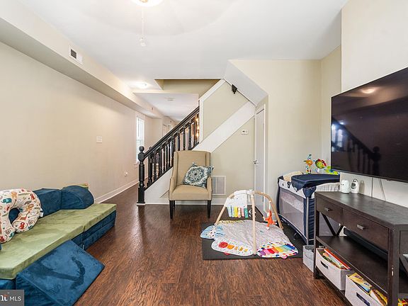 Welcome to this charming porch-front Victorian home, perfect for enjoying a morning cup of coffee on the covered porch. Step inside to gleaming hardwood floors and a bright, airy living room. The dining room seamlessly connects to a spacious eat-in kitchen, complete with ample cabinets, granite countertops, a tile backsplash, stainless steel appliances, and a versatile island. A convenient powder room is located just off the dining area. The first floor also features a bedroom with a large closet and an ensuite bathroom with a custom tile tub/shower combo. Upstairs, you'll find the primary bedroom with a walk-in closet and a full bathroom, plus an additional bedroom, ideal for guests. The third floor offers a bonus space that can be used as a recreation room or an extra bedroom, complete with its own ensuite bathroom and stall shower. Outside, entertain in the fenced-in backyard and host summer BBQs on the patio. The large driveway provides ample parking for you and your guests. Located near Belvedere Square, The Senator Theater, York Road, I-83, Towson, and an array of restaurants and shops, this home offers both convenience and charm. Don’t miss out—schedule your showing today!