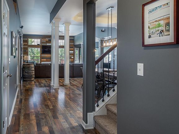 Step into this classic open ranch floor plan with an upstairs bonus room and a fantastic finished walkout basement. This popular Rockwood plan is so versatile and would suit so many needs, this one truly is a must see. Not only are the first floor living areas open and spacious, but the second floor bonus room is the perfect anything room. The finished walkout basement has a pool room (complete with pool table), bar and a theater room with three tier seating, equipment, bedroom and full bath. Back yard is a wonderful park like setting.