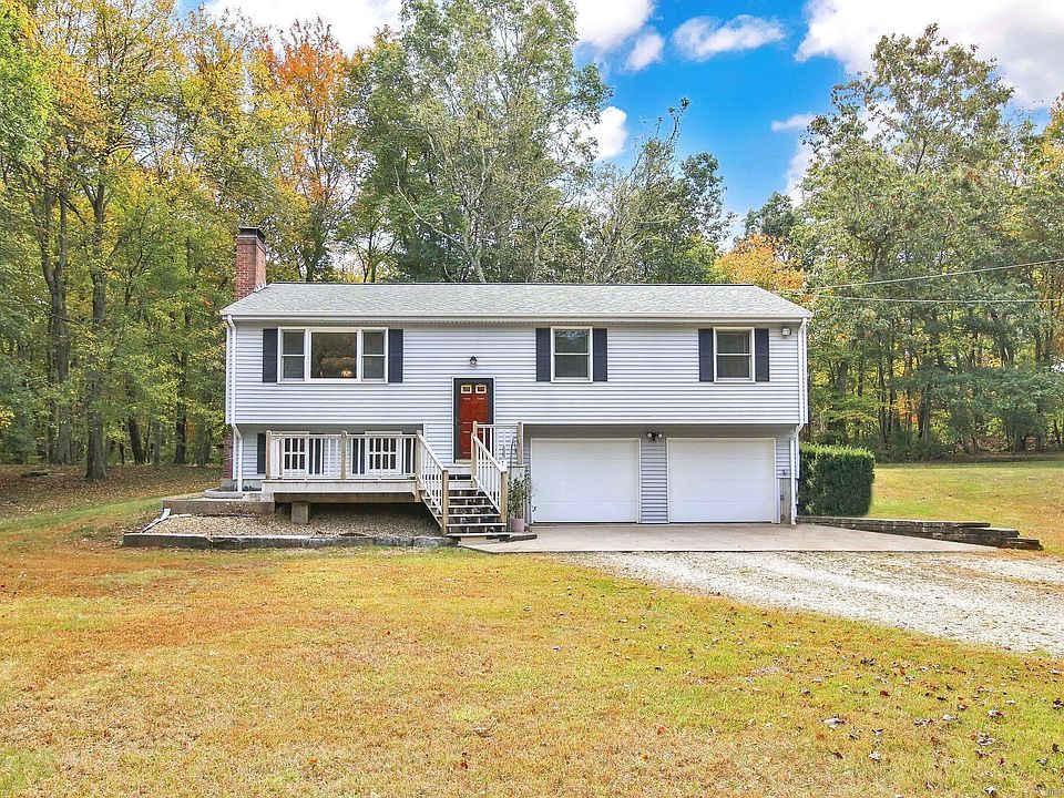 Welcome to your new home sitting on 5.6 private acres. This property sits back from the road and provides lots of beautiful scenery, peace and quiet! The home features Three Bedrooms, Two full Baths with a Lower Level Family Room with wet bar, laundry area and pellet stove. The Kitchen is remodeled with Hickory Cabinets, Granite Counter Tops with a breakfast bar and all Stainless Steel appliances. Slider from dining area to private deck. Two Car garage with electric heater and built in wall A/C. The home has Central Air, baseboard hot water heat. There is a natural spring on the property. The entire house is freshly, professionally painted and cleaned. The storage container remains with the home. Sale Subject to Probate Court Approval. One Year Home Warranty in place. Come and see this lovely property! MULTIPLE , HIGHEST AND BEST BY SUNDAY, OCTOBER 13TH, 7:00 PM.