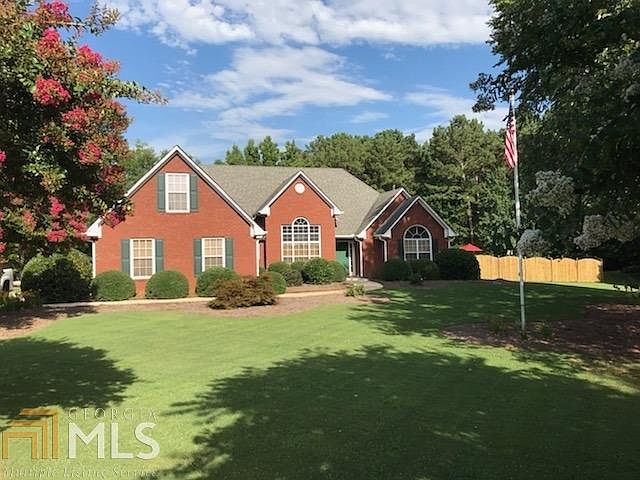 Back on the market- Private Cul-de-sac lot that backs up to a Preservation area, Full Brick home, 3 bedrooms 2 bath * bonus room could possibly be 4th bedroom*, hardwood floors, lots of storage areas, den/dining room, large closets in bedrooms, split floor plan. Large back deck opens up to a large fenced in play area and off to the side a Large Lagoon saltwater pool. Beautiful oasis to kick back in and relax. Sought after Locust Grove School districts. Simply paradise.
