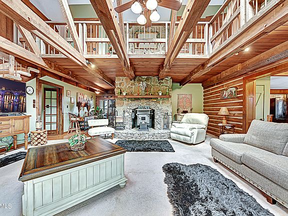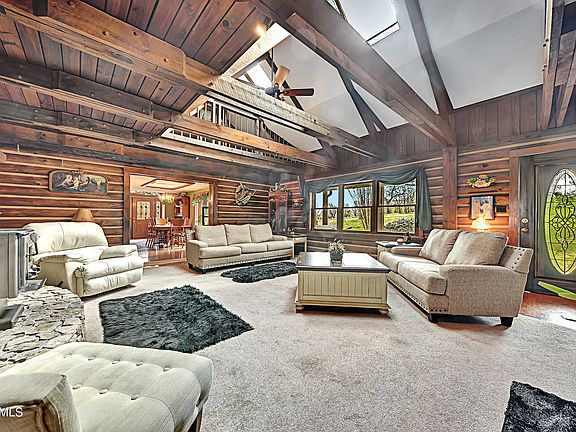 LOG CABIN WITH ACREAGE! This two story log home with 4 bedrooms, 4 baths, on 3.35 acres with 2,975 sq ft of living space. The features are covered front porch, sunroom with mountain views, wrap around deck, covered built in kitchen/grille and dining area, Covered hot tub off from sunroom. Enjoy the beautiful built in wet bar complete with mini fridge and wine cooler. This beautiful hand designed home has hand built rich wood cabinets, French doors, central vacuum system, two fireplaces, wood stove, butler's pantry, kitchen island, tile & granite, cedar shake, double garage and so much more.
