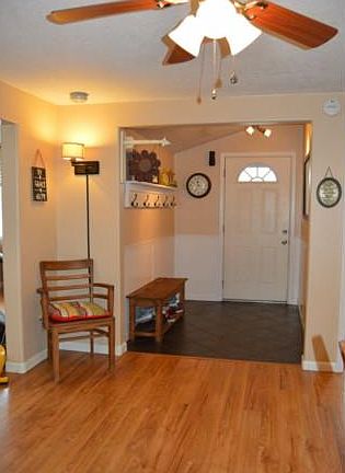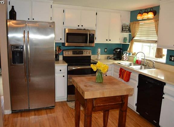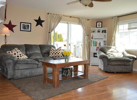 A retreat awaits you w/white picket fence on corner lot.Maple tree lined street.Features tile entry & laundry, Pergo flooring, fresh paint, blinds, updated kitchen w/stainless appliances, ceiling fans,french doors in master,accent lighting,pellet stove, privacy fence/gate to backyard,new deck,dog run,newer roof,detached 24x24 garage/shop w/power&slab.Storage sheds/landscaped/lighting,fresh gravel on driveway.Ample parking & 100x100 lot