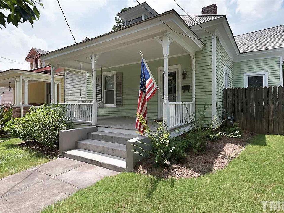 Charming bungalow in the heart of Oakwood! Great for front porch sitting! 2 bed/1 bath with tons of character. Charming characteristics include hardwoods throughout, tall ceilings, and two non-functioning fireplaces (one in dining and one in bedroom). Low maintenance fenced in backyard includes a nice patio and large shed (tons of storage). Closets in master bedroom convey! Walk to shops, restaurants, bars and soon to be Harris Teeter!!