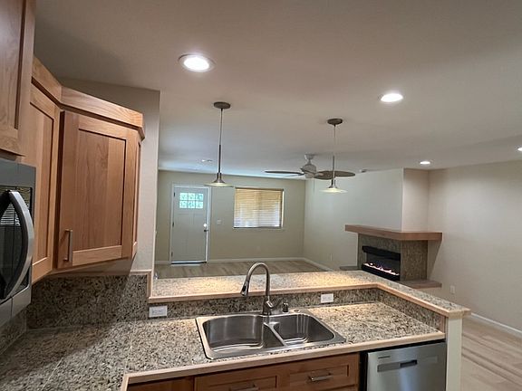 Architect designed, beautiful throughout, exceptional finishes, materials, light and air, overall design. Townhouse, 2 bedroom, 2.5 bath, all brand new, large, covered porch, large columns with distinctive brick base, immediately adjacent parking, large Great Room, kitchen with serve across bar, electric fireplace, all granite tile countertops, 2" high-end contrasting blinds, energy efficient, low e-argon filled windows, high efficiency heating and cooling with heat pump in Great Rm., wall heat throughout. Warm, cozy, well insulated, energy efficient. Gourmet kitchen includes high-end custom alder cabinets, designer pulls with satin nickel finish. Appliances are Whirlpool suite, all non-fingerprint stainless steel, 36" side-by-side refrigerator with water and ice dispenser. Kitchen opens to Great Room with a long, 'L' shaped eating or serving bar. Easy clean, warm wood tone, comfortable to walk on, LVT, padded luxury vinyl plank flooring throughout, over wood floor. Stair rail is clear for distinctive design quality, open feel, and light transmission. Washer/dryer unit in upstairs, hall utility closet. Master Suite is large with patterned, mirrored closet doors, ceiling fan, private bathroom with tub/shower. All 3 bathrooms have granite tile countertops and splash, with countertop extending the entire wall length. Lighting is designer bar fixture, beveled edge mirror, and heat included in bathrooms. Bedroom 2 includes cozy reading nook, ceiling fan, mirrored closet doors. This is Phase 1 of 6-home, planned Village, with private, common court/garden in the center. Phase 2 and 3 currently under way, drive by at 413 N Ella Avenue, call for appointment. Excellent mid-town location, with nearby schools and parks, easy pedestrian or auto access to downtown, beach, Lake Pend Oreille. Must See, great residential living option in comparison to large box, multi-family apartment buildings, this is a townhouse home. Water/S/G paid by Owner, non-smokers only, deposit, 1st and last month's rent at move-in.