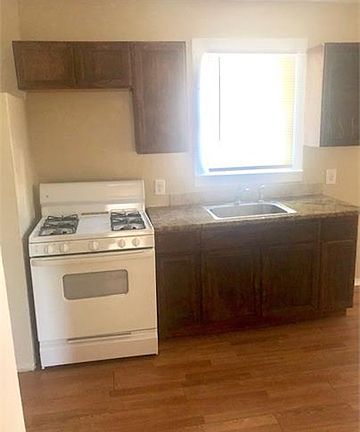 2 bed/1 bath remodeled home on corner lot. Washer/dryer connections, stove, storage shed, covered front porch.