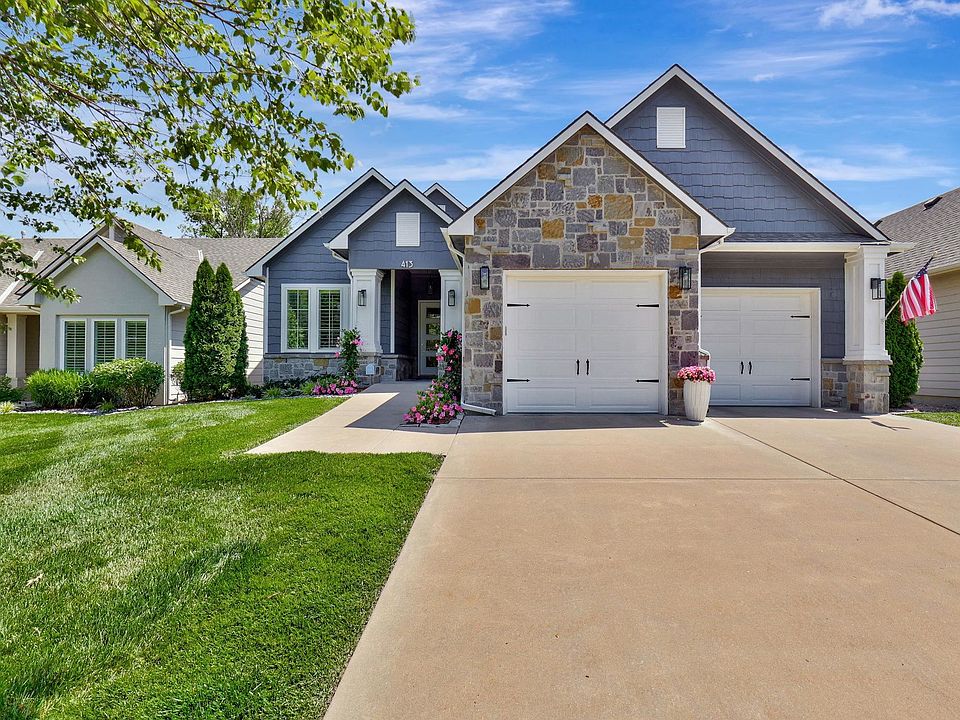 Welcome home! This stunning patio home has an open plan design, solid hickory hardwood floors, updated throughout including an improved kitchen and it is immaculate. Sellers have added amazing features that have taken this home to another level with functionality, style and luxury. Kitchen boasts a newer 48'' gas range with double oven along with 6 burners and a griddle, two beverage drawers, wine fridge, ice maker, stainless appliances, granite and quartz counters, custom hood, coffee bar and custom cabinets to the ceiling. Kitchen island with designer granite is impressive and offers great storage and the perfect central area for entertaining or meal prep. Walk in pantry has added shelving that is adjustable and further adds to the convenience, storage and functionality of the kitchen. Crown molding adorns both the kitchen and dining room adding to the sophistication to these areas. Dining room has ample space for larger tables and buffet and the flow of the dining and kitchen is thoughtfully designed. Plantation shutters grace the windows providing privacy and light control. Hickory hardwood floors grace the entire main level with the exception of the laundry and baths which are tile floors. Living room has gas fireplace focal, architectural ceiling details, abundance of windows providing lots of natural light, custom window seats flanking the fireplace and it all creates a luxurious place to spend time. Primary bedroom has vaulted ceiling and hardwood floors and his and hers closets along with additional shelving and cabinets to maximize your organization. Primary bath has walk in tile shower, double vanities with quartz counters and water closet. Main floor laundry is adjacent to the primary suite for added convenience and there is a drop zone as you enter from the garage. Basement is fully finished with newer carpet and paint, gas fireplace, two additional bedrooms, full bath with tub/shower, family room and game room (would also make a great home office, workout or craft room), walk up granite bar and storage room. The outdoor living is just as impressive and inviting and the composite covered deck with screening is the ideal place to relax or entertain. Yard is completely fenced and manicured and also has a patio. Sellers have made so many improvements and the list is available upon request. Maintenance free living in Frontgate along with a clubhouse (available for private parties) and a swimming pool add to the overall charm of the community. Location allows for easy access to highways, shopping and dining. Schedule your tour!