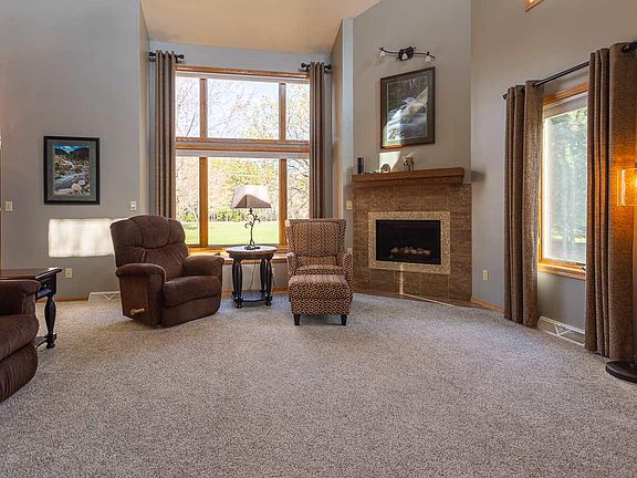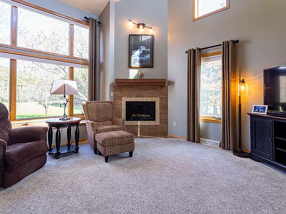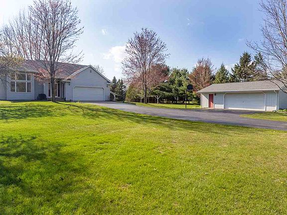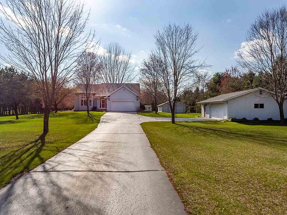 Gorgeous 2.6 acres is the setting for this 1.5 story, one owner home, 1st floor laundry, half bath, central vac, UG sprinkler system, new flooring in some areas, huge island in generous kitchen/ dinette w/ plenty of cabinets. Main floor Master suite has patio doors to screen porch and large deck. All 3 bedrooms have walkin closets. Lower level offers 2 finished rooms and upper level boasts 2 bedrooms and full bath. Outside are mature evergreens and pine trees, two additional garages, one is heated, plenty of room to roam and store all those toys. Updated roofs on house and garages.