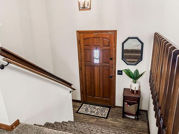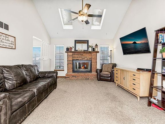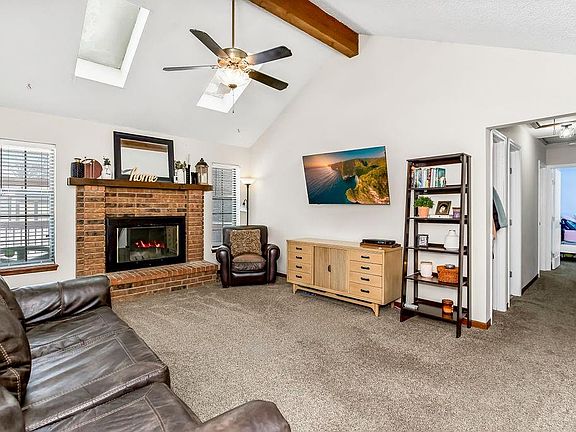 Located in the Highland Acres neighborhood, this 3-bedroom, 2.1-bath split-entry home is packed with charm and updates. The living room features vaulted ceilings with skylights, a cozy wood-burning fireplace, and plush carpet. The eat-in kitchen boasts butcher block countertops, LVP flooring, and a sliding door leading to a spacious deck overlooking the fenced backyard, complete with a shed and fire pit. The primary suite offers a vaulted ceiling, a walk-in closet, and a private bath with a walk-in shower. Two additional bedrooms share a hall bath with a shower over tub. The finished basement provides extra living space, a half bath, and a large laundry room with ample storage. Recent updates include a NEW furnace, NEW water heater, and NEW garage doors on the side of the home. With a spacious layout, great outdoor space, and a low annual HOA covering snow removal and more, this home is a fantastic find in Highland Acres!