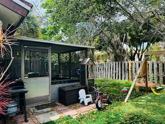 Discover this charming semi-attached home ideally situated between Federal Hwy and Dixie Hwy. Featuring two bedrooms and two bathrooms, this property is a fantastic starter home in a sought-after area. Enjoy vaulted ceilings and tile flooring in the kitchen, living, and dining areas, while the bedrooms offer cozy wood laminate flooring. Additional highlights include a one-car garage and a screened patio. Although the home could benefit from some updates, it is being sold AS-IS. Don't miss out on this opportunity--homes in this location move quickly!