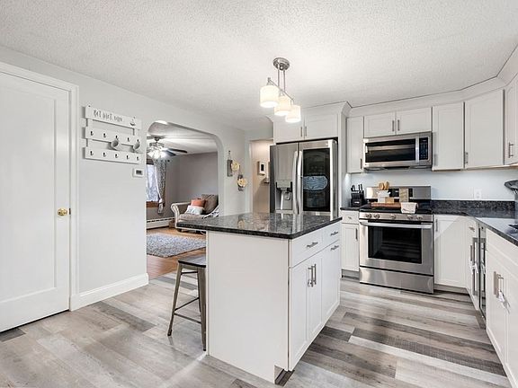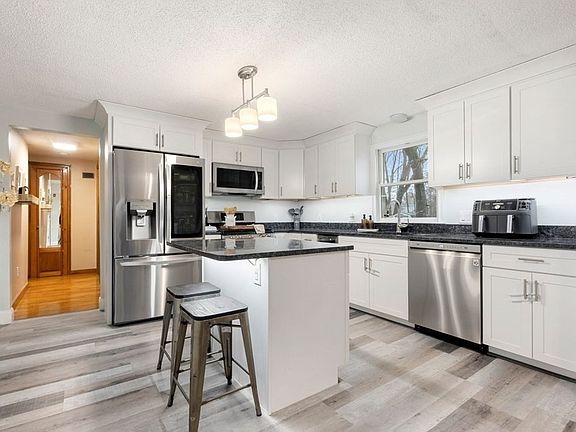 - Features: Flooring - Laminate, Countertops - Stone/Granite/Solid, Kitchen Island, Open Floorplan, Remodeled, Stainless Steel Appliances, Wine Chiller