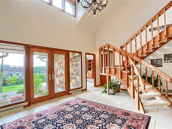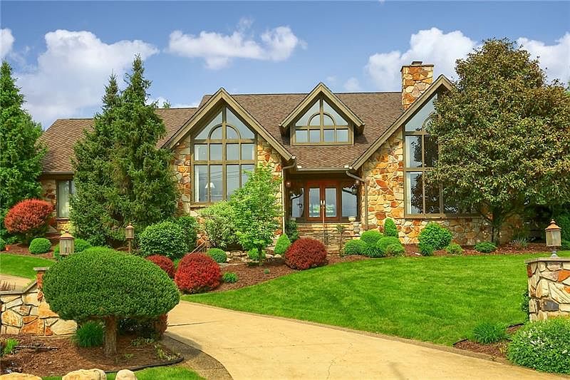 An Exquisite Home Combining Elegance with a Contemporary Flair to make it Extraordinary! This Custom Home Boasts a Stunning Open-Floor Concept with 20-Foot Ceilings and Sprawling Rooms. The Soaring 2-Story Entrance welcomes you to the Sunken Great Room with Stone Floor-to-Ceiling Fireplace and Wet Bar, Sunken Formal Living Room, Formal Dining Room and Executive Den. The Grand Master Suite is situated on the Main Level. The Second Level offers a Bridge between the Bright and Beautiful Bed Rooms with Skylights and Private Deck. The Lower Level features a Fabulous Game Room with Full Bar, Ballroom, Hair Salon and an additional Office. This Distinctive Estate is surrounded by Sweeping Stone Walls, Well-Executed Landscaping, Perennial Gardens, Fabulous Pool and Deck as well as 3-Car Garage. Exceptional Amenities and Custom Designs Throughout!