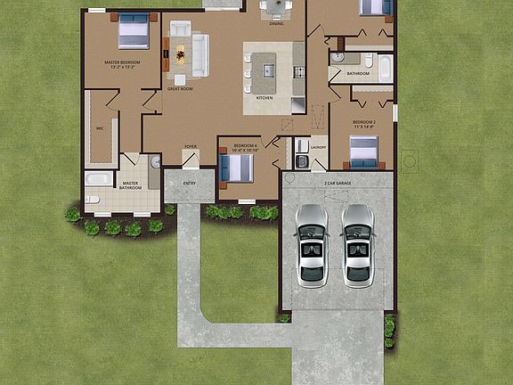 With a master bedroom and bathroom area that features a massive, double-sided shower, his and her sinks, and a spacious walk-in closet, the Livenza floor plan truly takes full advantage of its 1,919 square foot living space. The open living room and kitchen area expand into the large sliding door that leads to the generous lanai and several windows, allowing the beautiful sunny skies to brighten up your entire home with natural light. As with all our thoughtfully designed homes, we made sure to pay attention to every detail and optimized for convenience and quality. The secondary bathroom also features his and her sinks, making clean-up a breeze for guests or children. The two-car garage opens directly to the laundry room, allowing dirty laundry, shoes, and other unsightly items to remain tucked out of view. When you take a deep breath as you watch the trees dance in the wind from your lanai, you will be proud to call your stylish, Livenza floor plan, home. Tile throughout and stone will be added to exterior. Your amenities will include: Granite Countertops, Designer Cabinets, Stainless Steel Appliances, Premium Tile Floors, Smart Home Animation, Solar Panel System, Low-Energy Windows, Foam Insulation, Hybrid Water Heater, and a 16-Seer A/C System.