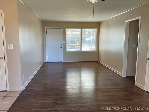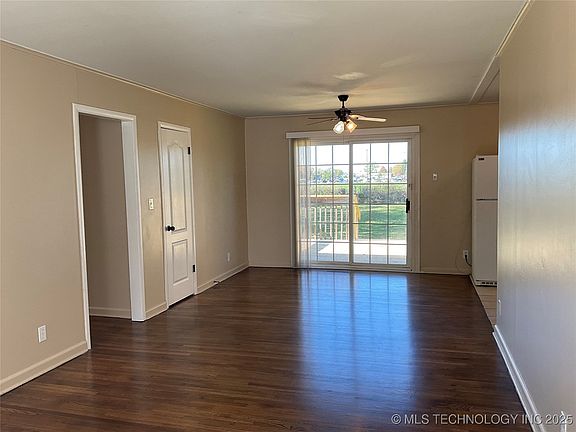 Charming 3/1/1 Skiatook schools. No carpet, mostly hardwood, tile and vinyl. Living room blends into dining area. Kitchen has dishwasher disposal, range/oven, and refrigerator. 3 bedrooms. Full hallway bathroom. Laundry in 1 car garage. Backyard deck overlooks green belt. No Smoking, No Sublease, No Waterbeds. Pet restrictions/deposit may apply.