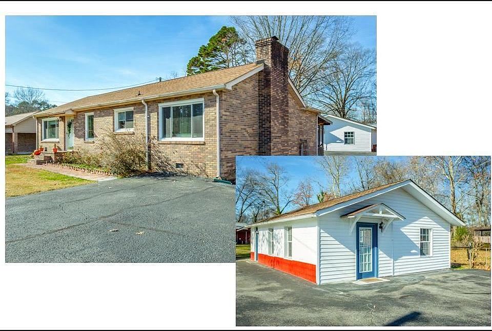 TWO HOMES + a BARN are included with this property. The MAIN house (photos are labeled) is Full Brick with two bedrooms and two full baths. No carpet here with hardwood and linoleum. The Living Room is petitioned off with a temporary wall that is easily removed. An inviting, spacious Dining room leads to the Fully equipped Kitchen. The former garage is now a large Den with a masonry Fireplace. There is a huge Laundry space with tons of cabinets and a Screened Porch in the back. The GUEST house is detached with it's own electrical meter. It shares the WATER meter with the main house. It's an open concept Living Space with a built in Bar/Dining Table all open to the fully equipped Kitchen. Two bedrooms plus a Full Bath and Stacked Laundry Space.