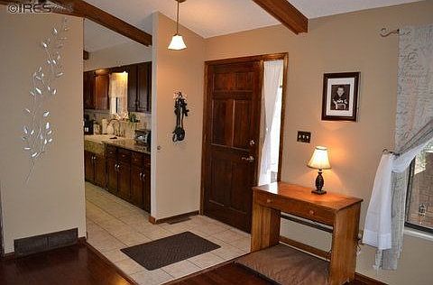 5 Min. to Ft Collins or Loveland! .35 acre corner lot. Updated in this open floor plan, 4 level, 4 bd-3bth home includes furnace/A.C. tile, wood flooring, granite counter tops, breakfast bar & all new stainless steel range,refrigerator,dishwasher,countertops, microwave. Master 3/4 Bth just remodeled. Vaulted ceilings. Pool table stays. Solar panels-low utilities. Fully fenced yard w/ R/V parking area. NO HOA. Large deck. 2 car garage w/attached storage shed. Cedar out building w/ hot tub.