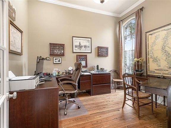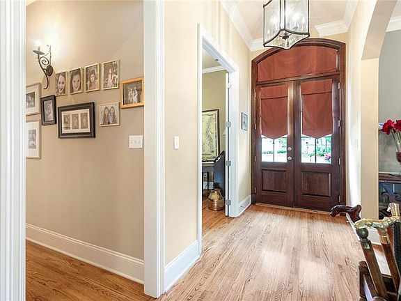 Original owners have lovingly maintained this French country home. The large living room at the heart of the home features a wall of windows overlooking the beautiful gardens and a travertine-surround fireplace flanked by built-in shelving and bookcases. The eat-in kitchen includes a center island breakfast bar, granite counters, all stainless appliances, butler’s pantry and walk-in pantry. The sun filled keeping room is presently being used as a breakfast room. Don't miss the separate office and formal dining room. There are 4 bedrooms and 3 baths (one jack n jill) on the main floor and a bonus room up. Primary suite includes custom LA closets, dual vanities, makeup space and separate frameless glass shower. Nail down wood floors in foyer, dining room, office & living room. Your favorite spot just might be the large brick patio overlooking the lovely gardens and ivy-arched lead fountain. So many extras: irrigation system, french drains, security system, 1.5-year-old full-house generator, 6 year-old roof. Located next to designated greenspace maintained by the HOA. Gated community life with a subd pool; storage room in garage; flood zone C. No pets have ever occupied the home.