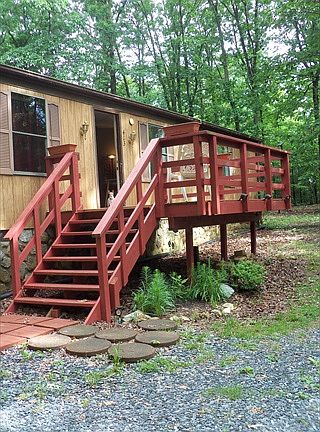 Enjoy your free range chickens and free range kids! Double wide mobile home, updated. Five wooded acres, zoned agricultural. Surrounded by woods, you can't see your neighbors most of the year. Several outbuildings. Fenced area for animals. Chicken coop, feed shed, bunny house, tool shed, new shed used for motorcycle. Stream cuts through property. Very private. Homesteaders dream. Master suite includes sitting area. New back steps, newer front deck. Satellite television and internet in place. This property includes the adjoining lot which is not calculated in the estimated price.