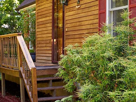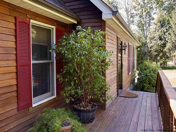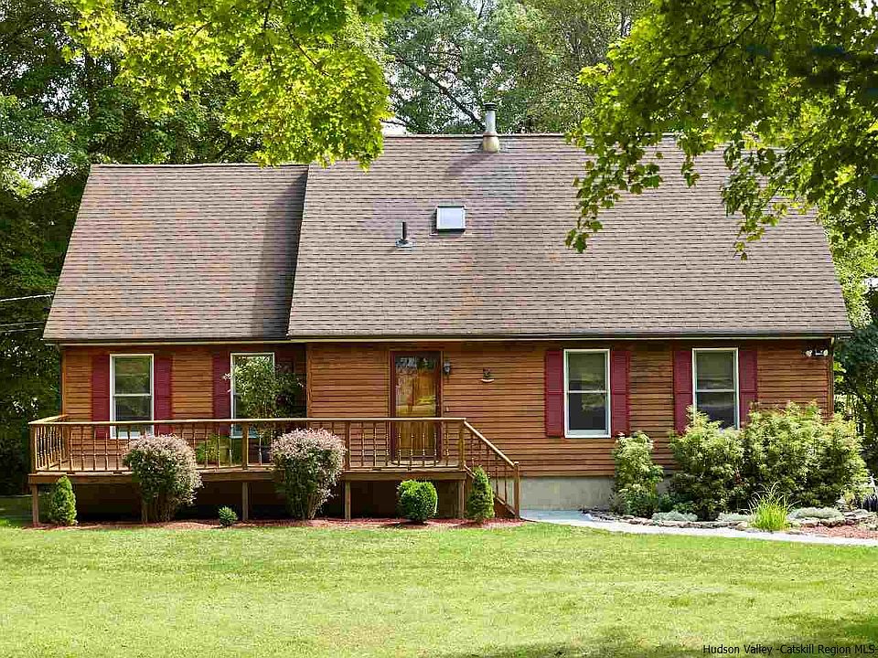 CEDAR-SIDED CAPE IN NEW PALTZ SCHOOL DISTRICT. This attractive cedar-sided cape is nestled among mature trees and perennials, with a bluestone walkway leading to the front porch. The back deck looks out towards the Swarte Kill creek, and the property's 8.3 acres include DEC designated wetlands. Second floor bedroom windows offer winter views of the small mountain ridge beyond the creek, and sunrises through the leafy tree canopy in summer. Inside, a practical floor plan--with two bedrooms and a full bathroom on the first floor--presents plenty of flexibility (home office, guest bedroom, etc.) and an easy flow between kitchen, living room and front hall. Upstairs you'll find a second full bath and two bedrooms, each with its own dormer bay window nook--a cozy place to read or work. The kitchen features a window over the deep double-bowl stainless steel sink, plenty of cabinets, recessed task lighting, pretty eco-friendly countertops made from recycled glass and sea shells, a large slider to back deck, and a generous 3'x7' peninsula with room for barstools beneath. Recently painted walls in neutral tones are fresh and clean. A whole house fan keeps this well-insulated home cool on summer nights. Other features include a stairwell skylight, backup generator, and full basement with high ceilings and Bilco doors. Plutarch Road is a tucked-away corridor, surrounded by nature and bordered by the Swarte Kill creek and wetlands, which represent a significant ecological habitat for wildlife and wild flora. While peaceful and serene, this location is only minutes from the bustling village of New Paltz, the NYS Thruway, and all four New Paltz Central School locations. Call to schedule your showing today!