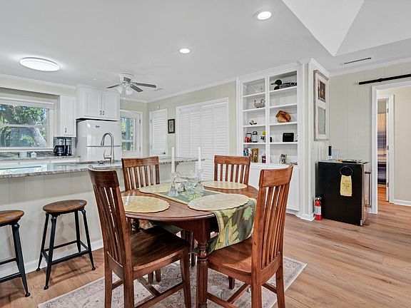 Just 600 feet from the ocean, 413 Pompano Street offers a beautifully updated 4-bedroom, 2-bath retreat on an oversized lot with tidal lagoon backdrop. Since 2023 the owner has added Coretec premium floors, remodeled both baths, updated the kitchen, and installed a tankless water heater, RO system, and solid core doors. The former screened porch is now a heated and cooled sunroom with EasyBreeze panels. Other upgrades include new siding, fencing, paint, rebuilt stairs and decking, new HVAC with ductwork, and appliances. A standing seam metal roof, newer windows, and an outdoor shower enhance the turnkey appeal. Sold partially furnished, this home produced over $50,000 in rental income in 2022 and is ready to enjoy as a vacation getaway, investment, or full-time residence.