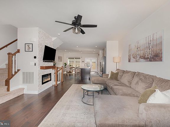 Absolutely stunning, 4 bed, 2.5 bath modern townhome with 2 car garage, and fully finished basement. You don't want to miss this one! This neighborhood has a huge, beautiful community center, outdoor pool, dog park, walking trails and fitness center. Just off of 43 with quick access to I-95, Rt 40 and Eastern Blvd and located within seconds of restaurants, shopping and gyms. Park out front on the street or pull into the large rear entry 2 car garage. Just built in 2018 this home is new, updated and well maintained and in an ideal location. The main level is completely covered in high quality engineered hard wood flooring with a full open concept. The living room, with updated stone accent wall and built in electric fireplace, flows seamlessly into the modern kitchen and dining area. The kitchen has a large granite island, and granite countertops, backsplash and full stainless appliances, as well as a large pantry to go along with all of the custom cabinetry. The dining area has gorgeous wainscoting lining the walls and French doors that lead out into the rear courtyard. There is just enough grass out back to allow pets room for duties, as well as privacy fencing and a paver patio for enjoying the weather and relaxing, grilling etc. A door from the courtyard leads into the rear garage. Back inside, stairs to the top floor lead to a full modern bath with tub/shower combo, a convenient top floor laundry closet with washer/dryer and three bedrooms. Two of these upstairs bedrooms have walk in closets, including the large primary suite with tray ceilings and its own private full modern bath with a soaking tub and walk in tiled shower. Taking the stairs to the basement leads to a large finished living/recreation area with beautiful built in accent wall with cabinetry and an electric fireplace, as well as a convenient powder room and storage/mechanical room. French doors on this level lead to another room that currently serves as a fitness room but could easily be converted to a bedroom. All functions and mechanics of this house are modern and well kept, the tankless hot water heater allows for limitless hot water. This home is updated, and move in ready and waiting for you to come call it home.
