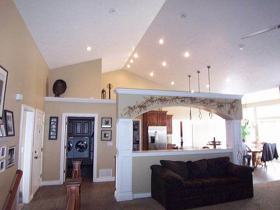 Spacious large rooms throughout. Great family home for entertaining. Office off kitchen with lots of custom cabinets. Laundry room nicer than some kitchens, custom cabinets everywhere. Downstairs offers 9' ceilings, 3 bedrooms, large family room with TV/theater room off family room. Big storage plus cold storage. Triple car garage with RV parking outside. All wrapped up with a white vinyl fence. Walking distance to school and park. Big patio out back to enjoy the summers.