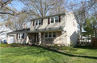 Beautifully updated 4 bed 1.1 bath located in the convenient neighborhood of Colonial Woods. Large open living and dining rooms great for entertaining with beautiful hardwood flooring and accent moldings. Located just off the dining room is an eat-in kitchen with 42' oak cabinets and updated countertops and flooring w/ cozy corner table and bench seating included. Cozy sunken family room with wood burning fireplace and beautiful built-in cabinetry, adjancent to the light filled sunroom leading out to a welcoming backyard with deck as well as patio. Spacious finished basement with neutral finishes. Four bedrooms located on the second level all with spacious closets and neutral carpeting. Roof 2002, A/C 2012, windows 2004, brick front walkway 2007, patio 2005, hot water heater 2010, furnace 2012, Front door and screen door 2003, Siding Shutters Gutters and Gutter Guards 2007.