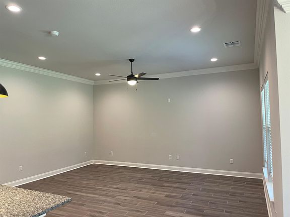 The TRILLIUM IV B in Evangeline Oaks community offers a 3 bedroom, 2 full bathroom, open and split design. The community is quiet with no through traffic and just minutes away from shopping and other amenities. Upgrades for this home include luxury wood-look ceramic tile flooring, blinds for the windows, a gas appliance package, and more! Features: double vanity, garden tub, separate shower, linen closet, and a large walk-in closet in the primary suite, primary closet goes through to the laundry room for added convenience, a kitchen island overlooking the living room, spacious walk-in pantry, mud room with boot bench, covered rear porch, recessed canned lighting, undermount sinks, ceiling fans in the living room and primary bedroom are standard, custom framed mirrors in all bathrooms, smart connect wi-fi thermostat, smoke and carbon monoxide detectors, post tension slab, automatic garage door with 2 remotes, landscaping, architectural 30-yearshingles, flood lights, and more! Energy Efficient Features: a tankless gas water heater, a kitchen appliance package, low E tilt-in windows, and more!