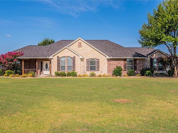 Very pretty, brick and rock home on a beautiful one acre lot that is landscaped with drought resistant plants, including Crepe Myrtle trees and a flag pole. There are custom window shades and drapes, gorgeous rock fireplace, elegant wood floors and crown molding along with tray ceilings. The large, bright kitchen has stainless appliances, custom cabinetry, granite counter tops, an island and french doors leading out to the large covered patio. The master suite has abundant room for large furniture. The bath has separate vanities, a jetted tub and separate shower and don't forget the huge closet. The utility room has a sink and folding area along with an enormous pantry and extra storage closet. And so much more