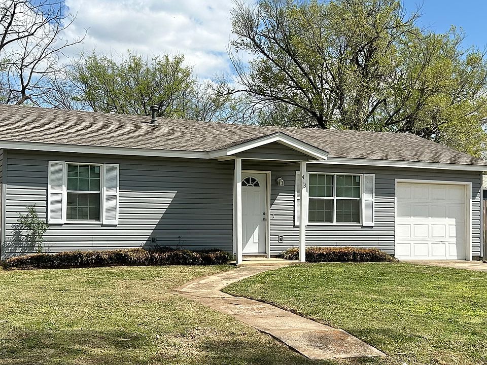 Available April 1. The house is currently occupied, do not trespass, please. Cute bungalow 5 blocks from The Rose District/Downtown Broken Arrow. Updates in 2023 include: new siding over additional exterior insulation, new windows, new interior paint, new tile floors, updated bathroom, new plumbing fixtures, new garbage disposal, new hot water heater. New roof and 6' privacy fence on the sides with chain link across the back including privacy netting. This home has original cabinets and charm in kitchen and bathroom. Vaulted ceiling in living room. Master bedroom will fit king sized bed. Second bedroom will make a suitable child's room or office. Walk in closets. 1 car garage with washer and dryer hookup, garage door opener. 1 year lease. Option for longer. No smoking on property. Minimum requirements include verified income no less than 3 times the monthly rent, 680+ credit score, no evictions and no debt gone to collections. Applications will be reviewed before questions or showing the house.