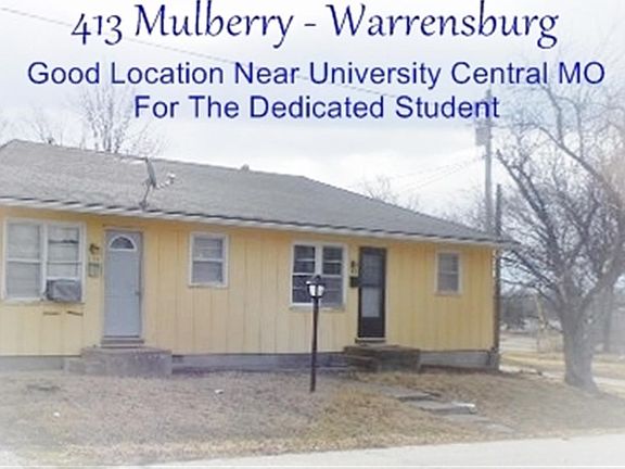 413 Mulberry - Warrensburg, MO - AFFORDABLE Home Ownership with Residential Loan. Located west of University Central Missouri and PRIVATE off street parking behind the home. One bedroom generates month-to-month for $350... Two bedroom generates $450 a month. Total $800 a month at the present time. Owner lived in one side in 2012 and moved to new job location... Owner Loved The CONVENIENCE, Freedom of Education, Sports, & Wise Choices with Good Friends - Easy to Show in Daytime - Call for appointment Brokered And Advertised By: RE/MAX COMPLETE Listing Agent: VIVIAN DRAPER