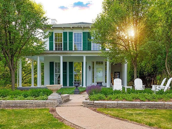 Step back in time to one of Galena's most beautiful and elegant homes, perched high on the western hill overlooking downtown Galena and the hills and rolling countryside to the East. This beautiful brick home at the end of the cul-de-sac features a 3-sided covered, wrap-around porch to enjoy the peaceful views. One of the highlights of the high-end custom kitchen and family room is exceptional moldings, trims, and coffered ceilings. The kitchen features granite countertops and a Viking Professional range. Off the kitchen, the sunroom features a peaked wood ceiling and many windows overlooking the nicely landscaped courtyard-style backyard. The formal dining and living rooms feature floor-to-ceiling windows, marble fireplace surrounds, beautiful woodwork, vintage wood floors, and magnificent plaster ceiling medallions. The grand front hall and stairwell lead you to the upper level, where you will find three bedrooms and two full baths with the same custom-detailed woodwork. The main level includes a half bath/powder room. The beautifully landscaped property features rock walls, and a brick-paved driveway and parking area.