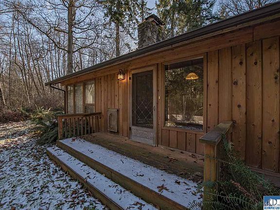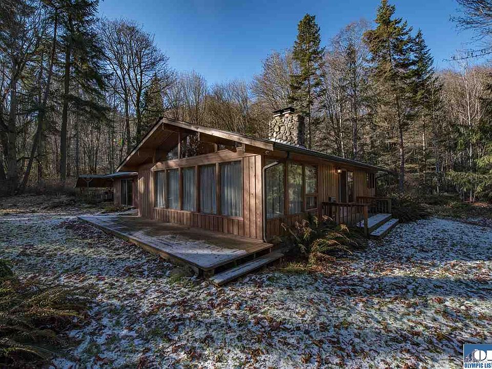 Cottage in the woods by Creek! This Mid Century Modern style milled log home features vaulted ceilings, river rock fireplace in living room off kitchen, brick fireplace in dining room, 2 bedrooms, one full bathroom & one 3/4 bathroom + bonus room. This Four Seasons Ranch home fronts on Morse Creek with 2 Lots located at the end of the road. The community has a clubhouse w/pool, golf course, beach front access, barn & stables, access to Olympic Discovery Trail from the home. This home is a must see!