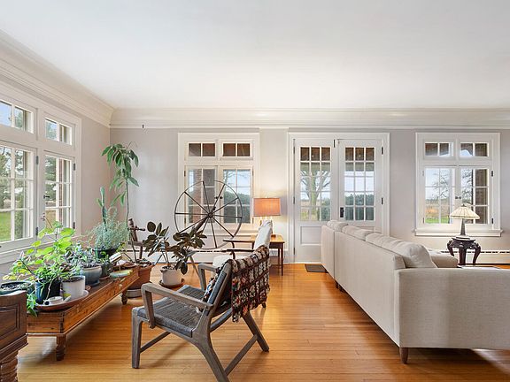 Stunning home on 2.8 acres in a rural setting with a Champaign Address This home boasts all the character and charm of yesteryear but with many updates for today's standards. Enjoy the spacious layout featuring large windows, gleaming hardwood floors, amazing custom millwork and many special features throughout. The kitchen has been masterfully enlarged and remodeled with custom cabinetry, a large center island and high end appliances. From the kitchen follow the easy flow into sun drenched dining room and living room. There's also a first floor office/bedroom with a half bath. The primary suite includes a private bath and ample closet space. There are 2 additional bedrooms and a full bath on the 2nd floor. The 3rd floor bonus space could easily serve as an additional bedroom. You'll be sure to enjoy the covered porch- sit back and relax and enjoy the tranquility of this classic country setting. There's a 2 car detached garage plus an iconic red barn out back that would be perfect for hobby or storage needs. Great location on the edge of Champaign in Mahomet School District. Don't miss this unique property, it really is one of a kind!