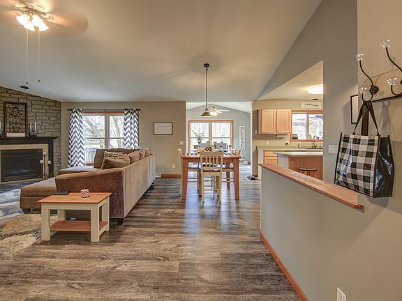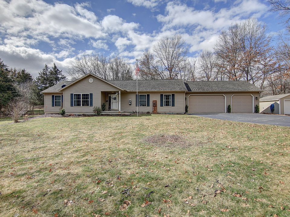 NO SHOWINGS PER OWNER. VERBALLY ACCEPTED OFFER WAITING FOR RELOCATION COMPANY TO SIGN OFF ON IT. Welcome home to this spacious three bedroom, two bathroom ranch in coveted Lost Nation subdivision! This home has had many updates in the last few years. The main level has an open floor plan and has a living room with a gas fireplace, a dining area, and a kitchen with a center island, newer appliances and sink! The sunroom offers a vaulted ceiling and a sliding door for access to the large deck, perfect for entertaining. The living room, dining area, and sunroom have new flooring, paint, and light fixtures. The master bedroom suite has a walk-in closet, a full bathroom with a walk-in shower with a separate tub, and new vanity. A slider door from the master bedroom leads to a private deck with a hot tub covered with a gazebo! Two additional bedrooms and a full bathroom located on the main level. Main floor laundry. Basement has a family room with a new wood burning stove, a dry bar, and recreation area. The basement has a roughed in bathroom and offers plenty of storage space. Three car attached garage and an additional 12x18 shed. Other updates include a new grinder pump and sump pump. Additional lot to east is included in sale (.24 acres). Lost Lake homeowners can enjoy lake privileges with beaches, club house, basketball courts, private roads and security!