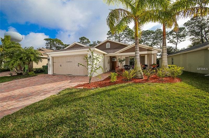 A lot of bang for your buck within this almost new, wonderfully upgraded and absolutely move-in ready 3 bedroom 2 bath home! You will instantly fall in love when you pull in the paver driveway and approach the peaceful front porch. Open the door and take-in the rich wood flooring throughout the great room and dining areas. Enjoy cooking in your very spacious eat-in kitchen, complete with ample granite counters, glazed raised panel cabinetry trimmed with crown molding, soft-close drawers, and the full compliment of upgraded Kenmore stainless appliances. The upgrades continue in the master suite complete with built-ins in the walk-in closet, dual sinks, glazed raised panel vanity, and sizeable shower. The upgraded 3 foot forward extension to the garage provides additional interior space within the dining area and also a great area for a small office or craft area. Don???t forget the plantation shutters, upgraded recessed lighting, pocket doors, sprayed-in foam insulation for added energy efficiency and sound insulation???.the list goes on. A very low HOA fee includes you cable and internet. This charming home is close to everything good ??? boat ramps, 3 international airports, The Outlets, fine shopping at UTC, Fine dining, hospitals, the Arts of Sarasota, and our world famous beaches. No need to waste 9 months building, purchase this home with confidence - the seller is including a one year home warranty for your peace of mind!