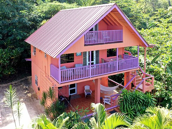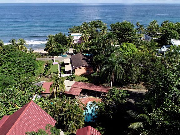 Pools Beach House is one of the most iconic properties in Rincon. Located directly across the street from Pools Beach, the Surf break can be directly accessed from the property through an old railroad tunnel! The compound has a main home (the A-Frame house), with 2 floors: 4 bedrooms, 2 bathrooms, balconies, terraces...with an eclectic design. Two additional 2 bedroom villas with their own kitchen, bathrooms, garden terrace and outdoor lounging areas. The BUS, a one of a kind concept with one bedroom, outdoor shower and BBQ area.... outdoor space with hammock and lush vegetation. An additional space that is currently used as a workspace that can have a rooftop that will have the best ocean and surf break view you can ever imagine! The 4 parcels are enclaved in a total of 2,359 square meters of land (more than half a cuerda) in the coveted neighborhood of Sandy Beach. From this location, you can walk to shops, restaurants and bars and more than 4 different surf breaks in the famous Sandy Beach! This land is unique, its wild jungle vibe vegetation and private surroundings are inviting and relaxing.... its an eco- space with endless possibilities... exclusive & quiet location, right in Puntas! Great potential as a income producing investment. Also can be a great property to share with friends or create a eco family estate with direct access to a surf break and the most breathtaking sunsets. Once in a lifetime opportunity - Best Place on Earth!!!