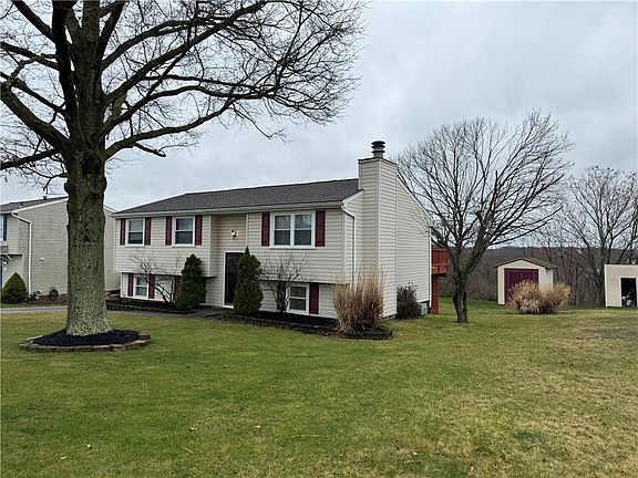 This attractive split-entry home in Moon Township offers three bedrooms, one and a half baths, and two-stall integral garage. Situated on .24-acre lot with large shed, the yard area gives ample outdoor space. Inside, you'll find a comfortable living room, dining room, and kitchen that includes dishwasher, electric stove, refrigerator and large deck off the rear of the home that has awesome views, perfect for grilling and gathering. The family room in the lower level features a stunning stone gas fireplace, creating a warm and inviting atmosphere, 1/2 bath and laundry and sliding glass doors that give easy access to the yard area, for relaxation and enjoyment. Plus, its proximity to major highways and corridors, short drive to downtown Pittsburgh, close to Pittsburgh International Airport, medical facilities, shopping, dining, recreation, and other conveniences, makes it an ideal centralized location for commuting and living.