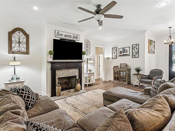 Open concept living area with four bedrooms and 2 baths, this lovely home has a lot to offer. The kitchen and bathrooms have granite countertops, stainless steel appliances, and plenty of storage. Primary bedroom is spacious and has a large closet, jacuzzi tub and tile shower. Great outdoor space with screened porch, fire pit, playground set and storage shed. This home is a definite must see.