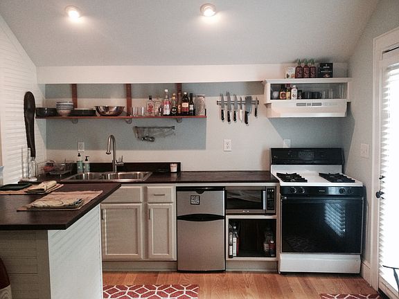 Space is a STUDIO suited for one person. Space accommodate a single bed with trundle the best; Full bed possible. Please note: All Utilities are INCLUDED except landline and internet (water, gas, cable, electric). No hook-up fees required. Beautiful free standing STUDIO is ideally located in a neighborhood across the street fom medical and dental schools. Walk a couple more to main campus, Kenan and the Dean Dome. Walk 10 minutes and you are on Franklin Street. The cottage is located in a quiet, safe neighborhood surrounded by families and graduate students. Recently renovated, this studio includes a front and back porch to bask in the sun or enjoy a glass of wine in the evening. The front porch has a stylish wrought iron bench and the back porch has a wrought iron table and rocker chairs for your comfort. Enter and you will find bead board finishes, handcrafted walnut counters, hard wood floors, tile bath, and a refinished claw foot tub with a shower surround, together creating a warm and cozy cottage feel. The kitchen is equipped with a two bay sink, compact refrigerator with space for an extra compact fridge if needed, gas burning stove and oven, and microwave. Additional features include a Samsung wall mounted television with a DVD player and a radio tuner connected to built in speakers allowing you to connect your iPhone or MP3 and listen to Pandora or Spotify as if connected to a stereo or computer. You will have laundry privileges once a week in the main house on the ground floor which has its own entrance. Parking space in front provided. All utilities- except landline phone- are included- water, gas, electric, cable If you appreciate beauty and want the convenience of walking to campus or uptown, please feel free to email me for a showing. Available Now Please note this space is suited for ONE person and will not allow for an abundance of furniture Storage, other than furniture, IS available in main house (ie suitcases, extra clothing, winter gear, etc) All utilities included EXCEPT phone and internet. First month's deposit due at the signing of lease.