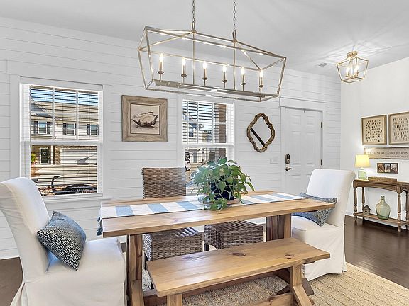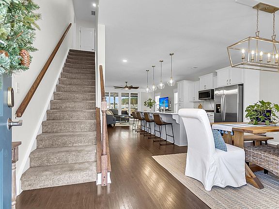 An opportunity to experience this like-new beauty in North Creek Village! Located on a quiet street in North Creek Village community, this stunning 3-bedroom, Bonus Room, 3.5-bathroom home offers sunset views and checks all the boxes for luxurious living. From its serene pond views to a flowing open floor plan, this home is designed for both relaxation and entertainment.Enjoy the convenience of a primary bedroom on the main floor, featuring shiplap walls, beautiful pond views, and an en-suite bathroom with a soaking tub/shower combination, granite double vanity, and a walk-in closet.Prepare meals in style with a massive 12' island topped with gorgeous quartz counters, quartz backsplash, custom pull-out drawers, filtered water, sleek stainless-steel appliances.Entertaining is a breeze with a spacious family room that opens up to the large screened-in porch via tinted gliding sliders. Imagine relaxing in the sunroom, overlooking the pond and watching the sunset each evening. From the upgraded composite plank flooring throughout the dining, kitchen, and living areas, to the new LVP flooring in the bonus room and primary bedroom, every detail has been meticulously crafted. Additional features include an open wood spindle staircase, freshly painted interior and garage, new light fixtures, and custom storage solutions. Upstairs, find two generously sized bedrooms with ample closet space and a full bathroom, plus a huge bonus room that can easily be transformed into a playroom, office, or extra bedroom. Enjoy a low-maintenance yard with new rocks and plants, and a fully fenced backyard for added privacy. Recent improvements include a new cabinet under the stairs with wine fridge, added closet systems, tinted sliding glass doors, and custom cabinetry with pullouts for added functionality. This home offers a perfect blend of modern style and thoughtful design. The open-concept layout is perfect for entertaining, while the screened-in porch provides the perfect escape for peaceful evenings. Community has a pool, trails galore! Ride, bike, golf cart to grocery stores, coffee shops, restaurants and schools! The updates, upgrades and location make it truly move-in ready and a must-see!