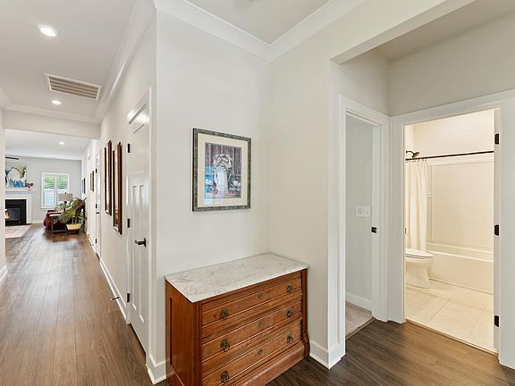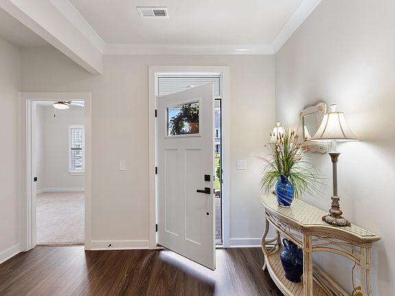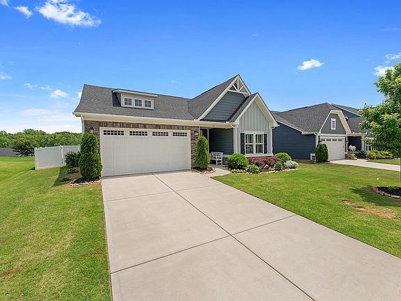 Welcome to your DREAM HOME located in one of the TOP 5 CITIES to live in the nation! This single level 3 bedroom, 2 bath home boasts several upgraded features that will make you never want to leave. As you walk through the front door, you'll notice the solid flooring throughout the main living areas, providing a modern and sleek look. The bedrooms are carpeted for added comfort and coziness. Step outside to the screened porch, the perfect spot to relax and enjoy the summer days in the south. And if that's not enough, a nearly new HOT TUB awaits you in the backyard, surrounded by a PRIVACY FENCE, LAWN IRRIGATION and beautifully landscaped yard. Inside, the UPGRADES continue with a beautiful CERAMIC TILE herringbone patterned backsplash adding a touch of elegance to the nicely appointed kitchen. Please note: the REFRIGERATOR conveys and the DISHWASHER is only 1 yr old. QUARTZ countertops and STAINLESS appliances are sure to inspire any home chef. The upgraded lighting, door and cabinet hardware, the primary bedroom TREY CEILING, and AMAZING TILED ROMAN SHOWER with two shower heads in the primary bath are total indulgence! Cozy up next to the GAS LOG fireplace on those chilly nights, or enjoy the stamped and stained screened porch flooring on a breezy afternoon. Your walk-in laundry is conveniently placed near the Primary Suite and comes equipped with the WASHER and DRYER which convey. You'll appreciate the added style and privacy afforded by over $5k worth of PLANTATION BLINDS have been installed throughout the home. Thrive living the Riverstone community life with amenities including but not limited to a sparkling Pool, Playground, Gas Fire Pit available year round, A gym, and tennis courts. There are plenty of activities, social gatherings, walking trails along the river SO MUCH MORE! Don't miss out on this move-in ready home. Call today for more information, a tour, or to make an offer. Your dream home awaits!