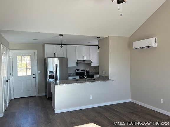 Brand new, energy efficient home for first time home buyer or anyone looking for a small, comfortable home in a quiet neighborhood. 720 square feet of coziness with vaulted ceilings, double pantry, washer and dryer, refrigerator, and range included. Spray foam insulation and two mini-splits keep this home at he perfect temperature. Builder is providing a one year home warranty and 3% seller credit to help cover closing costs.